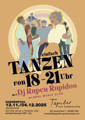 Mit DJ Rupen von Rupidoo Global Music Club veranstalten wir Abende, die sich rein auf das Tanzen ausrichten und für jedes Alter eine Freude sind. Die rhythmischen Musikstücke entführen in ferne Länder. DJ Rupen ist ein Meister seines Fachs und mixt tanzbare Weltmusik aus Global Beats, Afro, Cumbia, Balkan, Global Pop, New Tropical und Oriental Beats so, dass der Körper auf die Tanzfläche will noch bevor es der Kopf weiß.